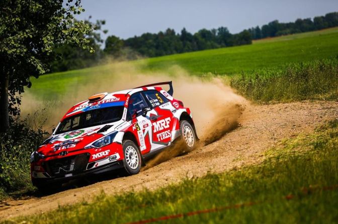 Team MRF Tyres showed great pace on the first full day of running at the FIA European Rally Championship’s opening round, the ORLEN 77th Rally Poland.