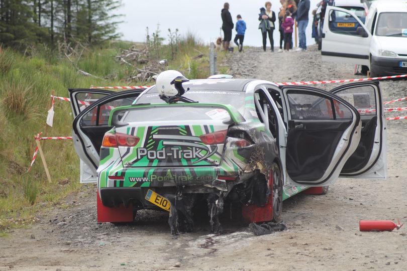 He and his driver, fellow London Irish Motor Club member, Anthony O’Brien, were contesting the first rally to run in Scotland after COVID-19 restrictions were lifted, when their Mitsubishi Lancer E10 caught fire.