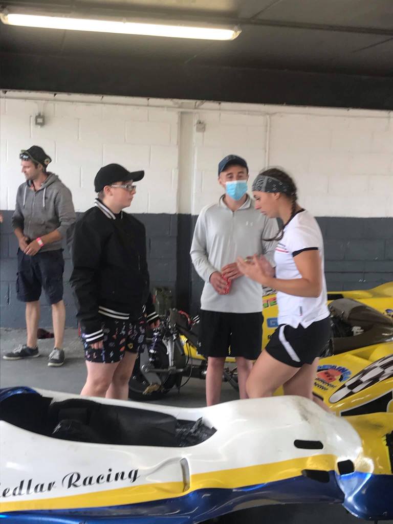 Killarney sidecar racer Siobhan Ardener took time out of her busy schedule at the Dunlop Masters Irish Superbike Championship to show the next generation of motorcycle racers some behind the scenes activities at Mondello Park.