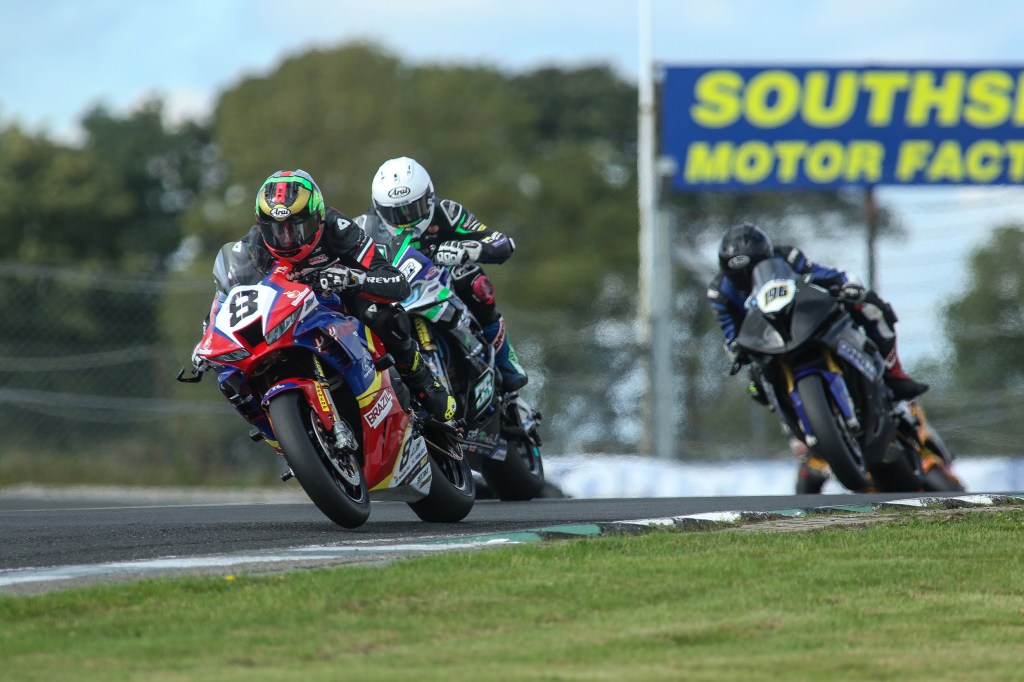 The Superbike races were all about Richie Ryan who took three race wins in a single weekend for the first time since the opening event of 2019. Behind him the podium places were filled by Thomas O’Grady and Emmet O’Grady. On each occasion Thomas had to battle his way past Emmet to take second place and the Dubliner was particularly impressive in race three as he went around the outside of his Kerry rival at turn one, to take the place. With Derek Sheils absent and Michael Sweeney slightly off his usual pace following his Cookstown road race accident, Ryan had it easier than it has been all season and now looks odds on to take his fourth Superbike title.