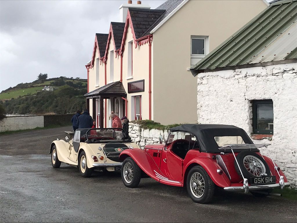 They also stopped at Helen’s Bar at Kilmackillogue Pier to continue with the rally road theme.