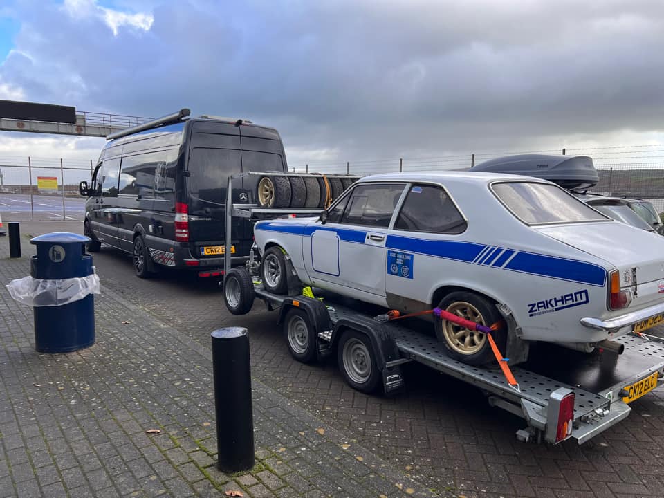 His mechanic, Tom Mansfield, from Waterford, who served part of his apprenticeship as a mechanic in AnCo in Tralee, was on hand to repair the damaged brake lines. But in true rally fashion nearby teams in the service park, including Den Motorsport (who were running London Irish Motor Club members John Reddington and Paul McDevitt) and professional Belgian outfit Scratch Motorsport all dived under the Avenger and helped get the car back out just in time – well just over time – the time card was presented (by yours truly) just as the clock turned over the minute and a ten-second penalty was applied for being late out of service.