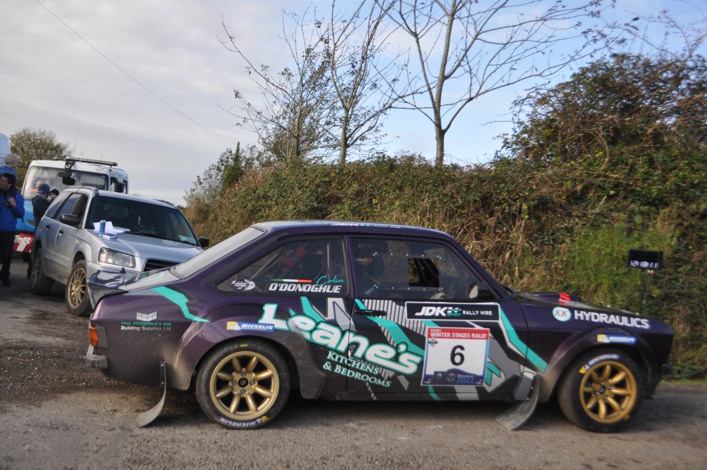 Did not start, a timing belt issue on the shakedown ended their weekend too soon. They spent hours in a Tralee shed on Saturday night trying to solve the problem but to no avail. Mark woke up Sunday morning and instead of being depressed about it, put his hand in his pocket and put up cash prizes for the junior rally.