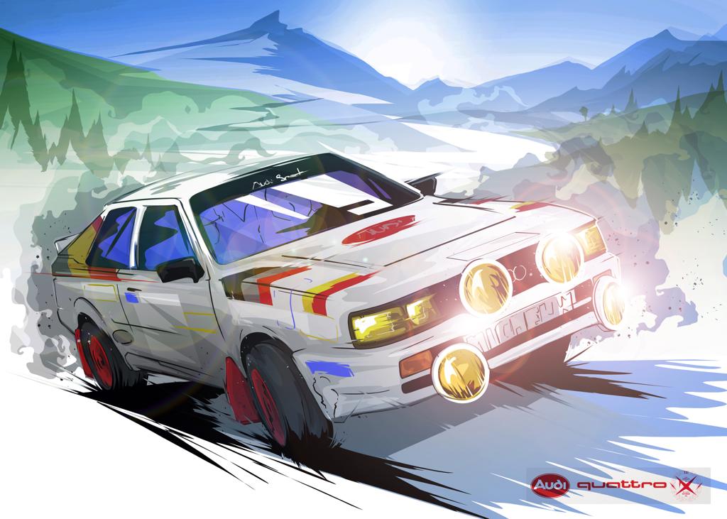 He made contact with the artist and the net result is this stunning painting of the Audi in action on an Irish Rally stage.