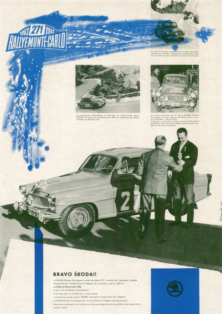 At the 1961 MCR, the Finns Esko Keinänen/Rainer Eklund won and at the same time took a magnificent sixth place overall. They dominated the ‘Thirteen Hundred’ class in 1962, as well. In January 1963, the Norwegians Edward Gjolberg and Carl Karlan followed up on these successes with the OCTAVIA TS 1200.