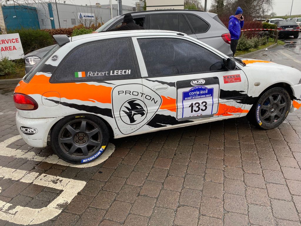 Wexford’s Robert Leech s employed Denny Greaney from Cordal as his co-driver for the weekend in their unusual Proton Satria. They were in and out of a few Galway ditches on Saturday. A broken differential ended their Sunday run.