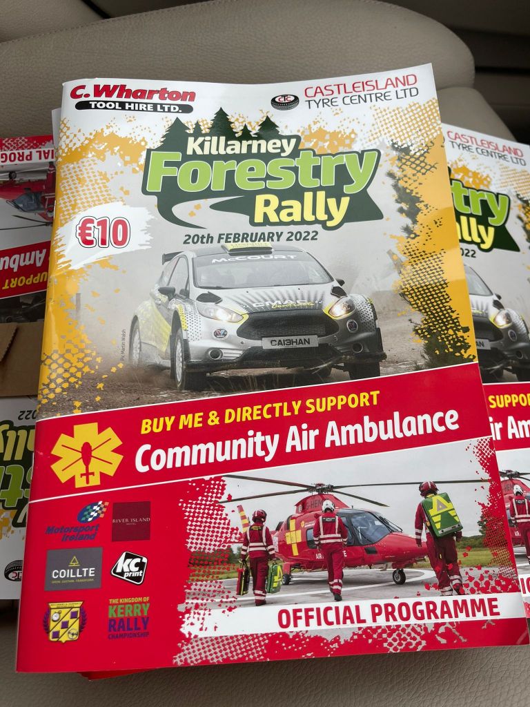 Programmes for the Killarney Forestry Rally will be on sale in Killarney and Farranfore from around 7pm on Friday.