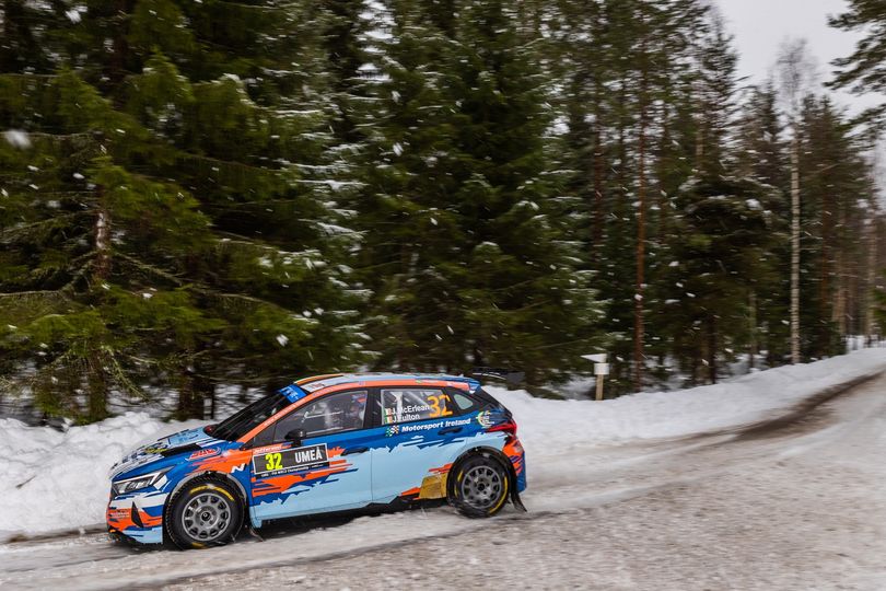 Josh McErlean and James Fulton are 19th overall and lead the WRC 2 Junior class and are tenth in WRC2 overall.