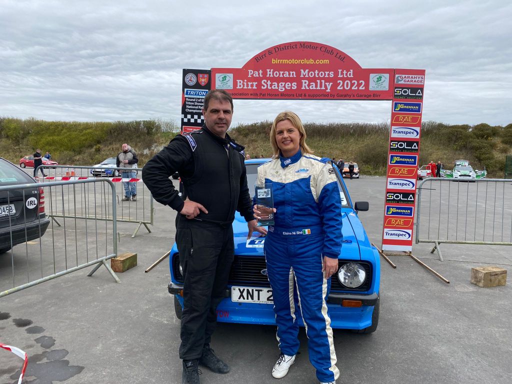 West Kerry’s Elaine NI She, co-driving for Alan Nesbitt took home the Women in Motorsport Ireland trophy for the highest placed Top Part West Coast Championship registered female contender. This was the second time in as many rallies that she won this trophy.