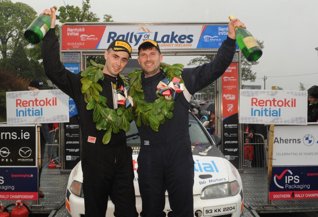 Drama is a word often thrown around in sport, but on Sunday last, the finals stage of the International Rally of the Lakes will go down in history for a long time to come. Overnight leader Alastair Fisher had a 7.7-second lead coming into Sunday but a quick run up Molls Gap and Ballaghbeama early on Sunday morning cut the gap down to 5.8. Following a dead heat on the second run over the Gap, the battle came down to the final stage of the event, Caragh Lake, with just 3.1 seconds between the pair. Alastair was first on the road and halfway through the stage he crashed off the road and couldn’t get back out to finish the stage. That let Callum Devine in his VW Polo R5 past and won the Derry man a maiden rally victory in Killarney.