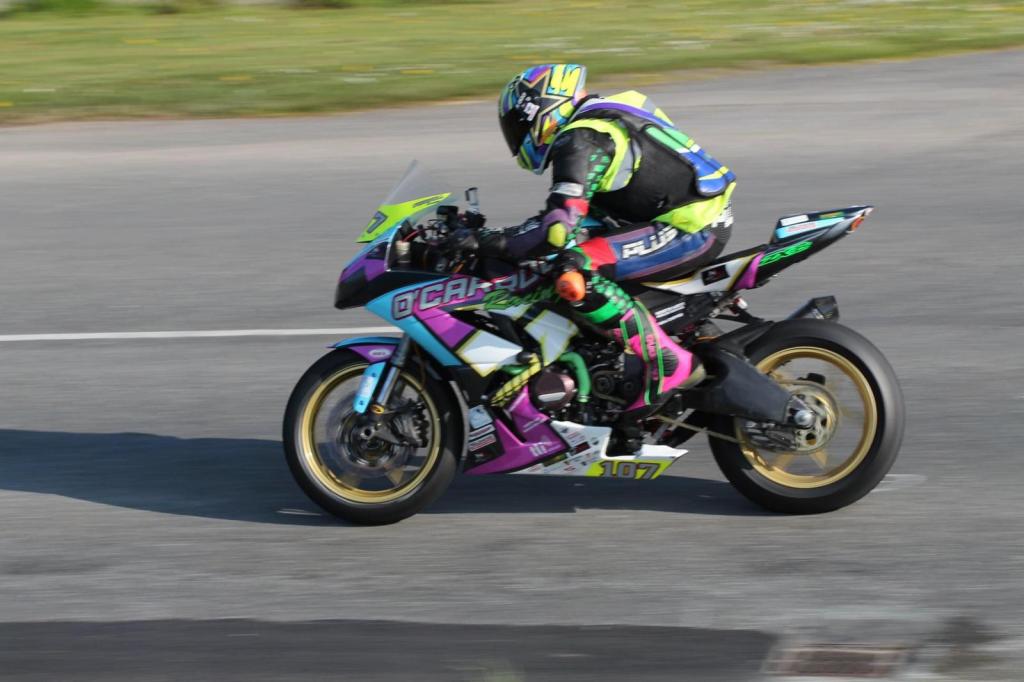 Anthony O’Carroll was hoping to contest two different classes but only one ran before the meeting was called off. He finished 11th in his Junior Supersport race but he admitted that event was hazardous in the wet and his Senior Support race was cancelled at the last second.