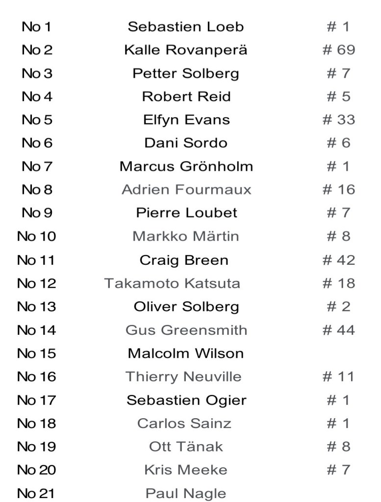 Signatories include multiple World Champions like Sebastien Loeb, Sebastien Ogier and Carlos Sainz. Irish world championship heroes Meeke and Breen have also put their names to the helmet. In total over 20 current or former World Championship drivers have signed the helmet.