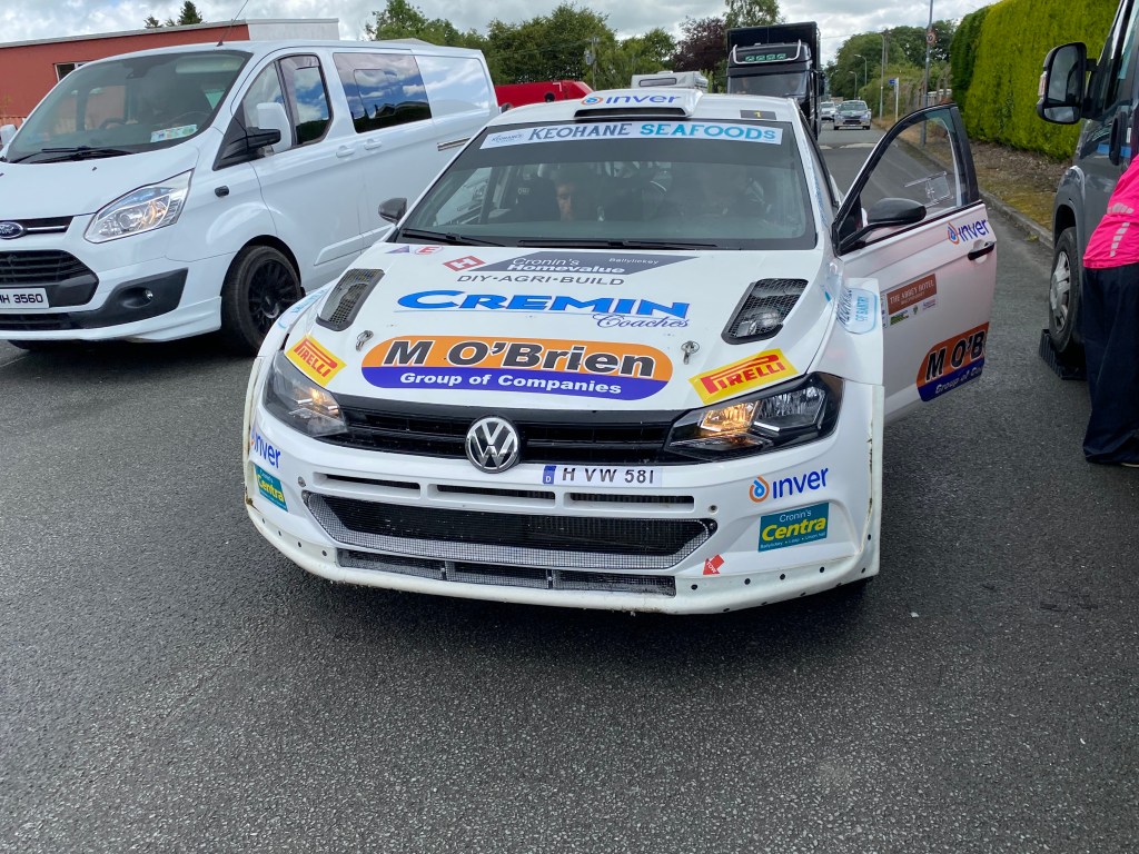 With just two stages remaining in the Munster Car Club’s Moonraker Rally, Keith Cronin and Mikie Galvin hold a healthy lead in their Volkswagen Polo GTi. The are now 42.2 seconds ahead of their closest challengers, Patrick and Stephen O’Brien, who have re-taken second place from Niall McCullagh and Ryan McCloskey.