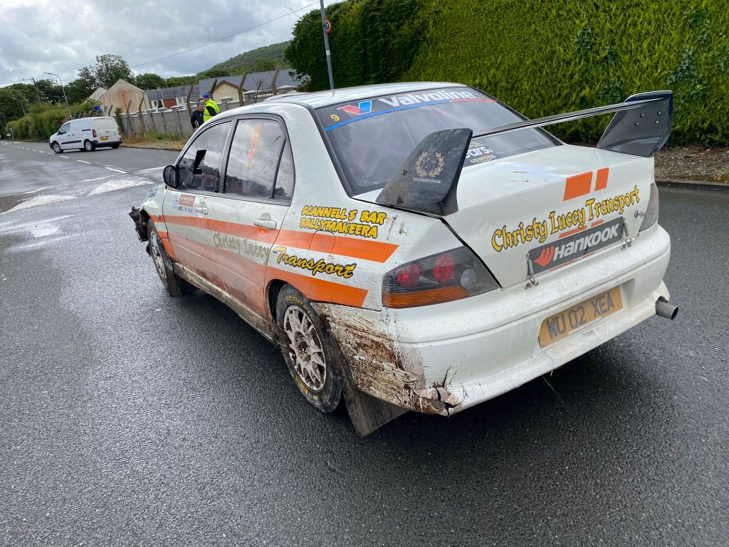 Local driver Gerard Lucey and his Headford codriver Donagh Crowley had to rely on Super Rally rules to get their Mitsubishi Evo 8 to the finish after being off the road on ss1.