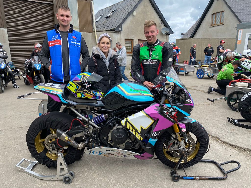 Local Skerries rider Micko Sweeney was named man of the meeting after winning three of the four races he contested. Sweeney’s back-room team included Tralee-based race mechanic Der Rahilly and SuperTwin racer Darragh Crean.