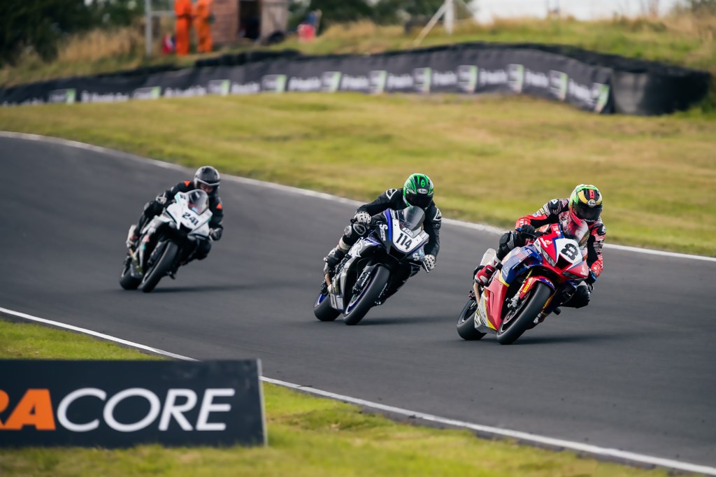 The new for 2022 points scoring system has produced closer battles than previously seen in almost all of the support classes with the Principal Insurance Twins amongst the tightest. In Supertwins the battle remains between Thomas O’Grady and Darragh Crean with both riding the new for ‘22 Aprilia RS660 machines. O’Grady took the wins in races one and three, with Crean second in both, but due to the pressure of the championship chase both were too eager to get away from the lights in race two and received jump start penalties. From the outside of the front row, Vinny Brennan, on his first 2022 visit to the Masters, clearly witnessed the infringements and showed his experience by following the top two home knowing he would take the race win after penalties were applied. The Production class pendulum swung towards Nathan McGauran over the three races as he took two wins to Brandon Kavanagh’s one. This has been the battle of the season with the two riders rarely more than a few feet apart throughout every race weekend and will surely be one of the most keenly contested titles at the final event of the season.