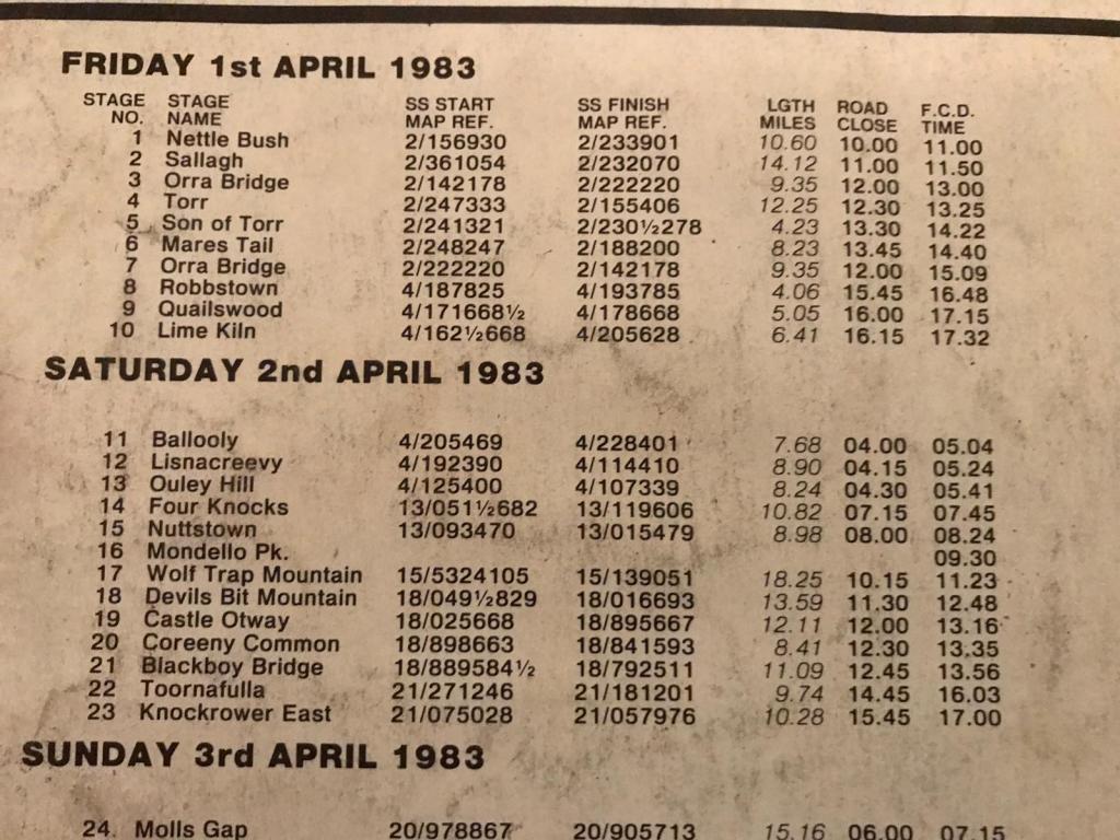 1. Knockacullig on Easter Monday april 1983..was the Last Circuit of ireland stage Ever in Co Kerry….it went on to Dromtrasna near Mountcollins…then on its way up north….