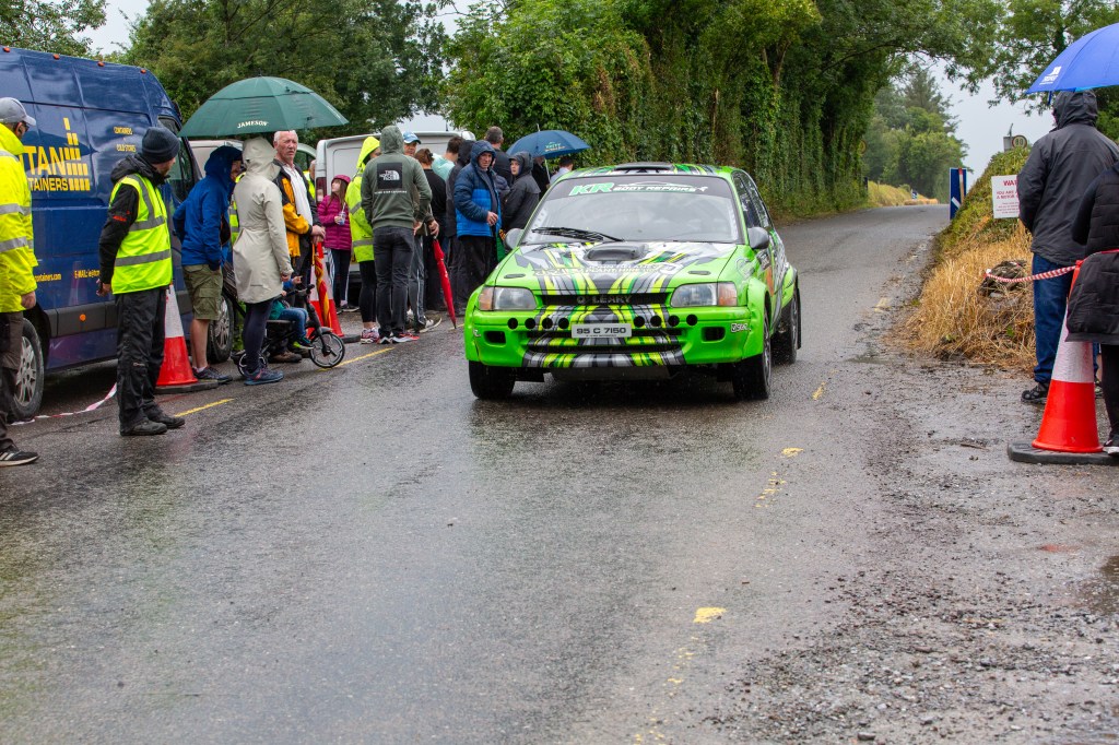 Firies-based West Cork man Vince McSweeney was the best of the local drivers. The rules stated that a driver must have a Kerry address to qualify for the award. The Mitsubishi Lancer E7 driver finished fourth overall.
