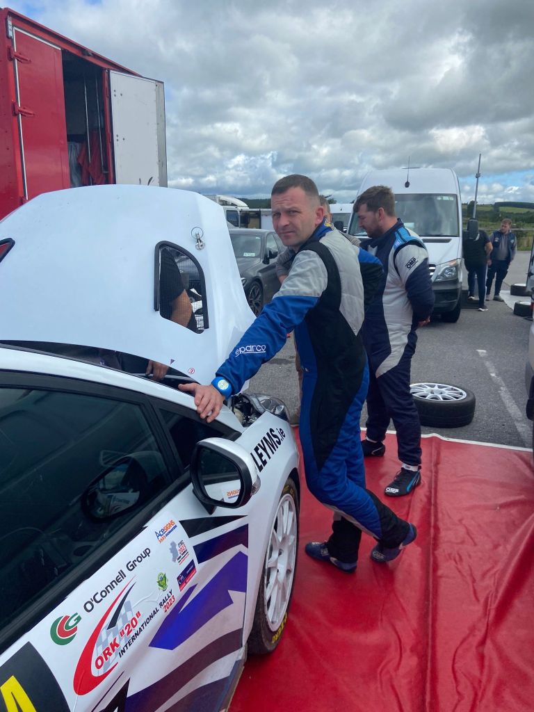 Cold tyres meant Tom Randles was off the road on the first corner of the first stage but his engineer, Cathal Browne, had him back out later in the day.