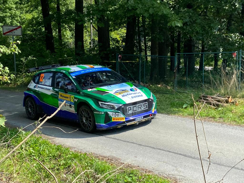 Monaghan co-driver Mac Kierans, who is on pacenote duty for Australian Max McRae ended the day second in the FIA European Junior Rally Championship.