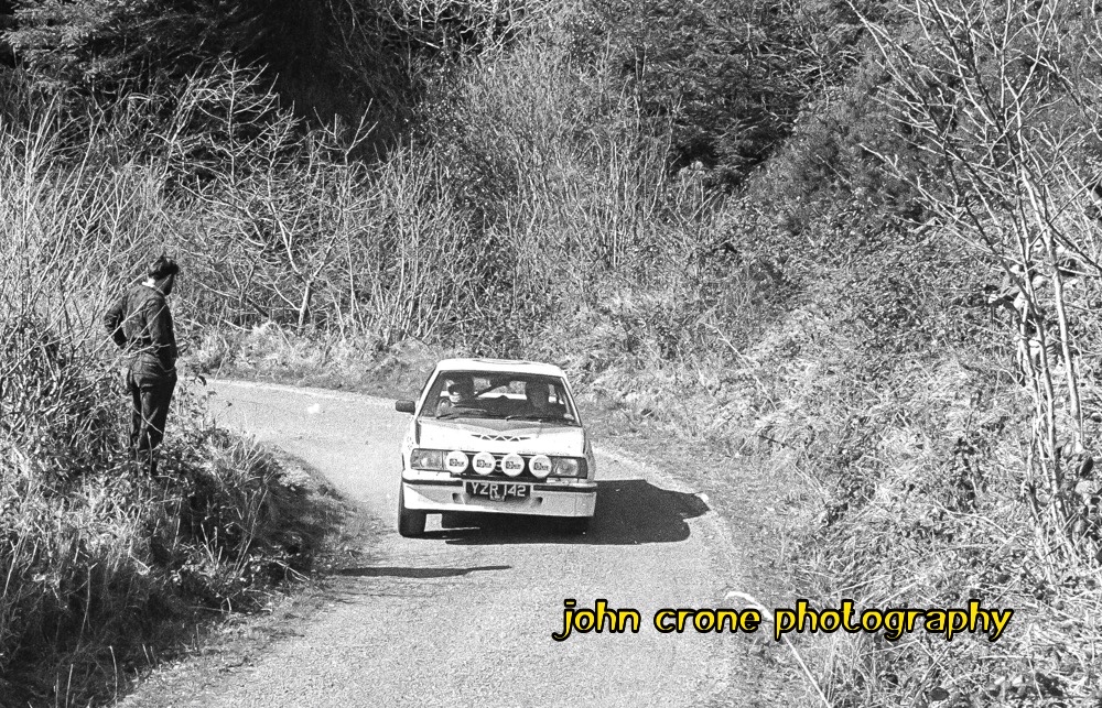 “For the times we live in, a shot of Rosemary Smith/Rita Farrell in the Ascona 400, Desmond’s Grave [County Kerry]stage, Circuit of Ireland 1980. The crew finished 16th o/a. Some pilot and a lovely person, RIP.”