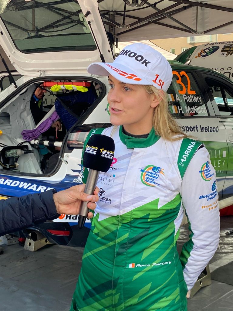 Galway-based rally driver Aoife Raftery and co-driver Hannah McKillop are holding a top ten position after the first full day of action at the third FAI European Junior FIA Rally Championship.