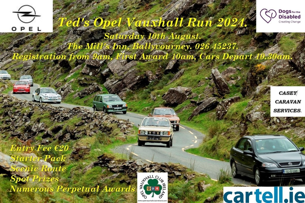 The 17th Ted’s Opel Vauxhall Run will take place on Saturday August 10th It will be based at The Mills Inn, Ballyvourney, Co. Cork.