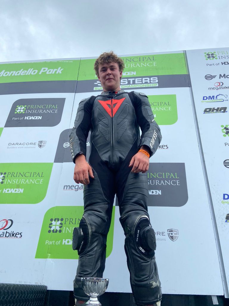 Alex O’Grady was aback on the podium with a third-place finish in the second Supersport cup race on his Suzuki GSXR.