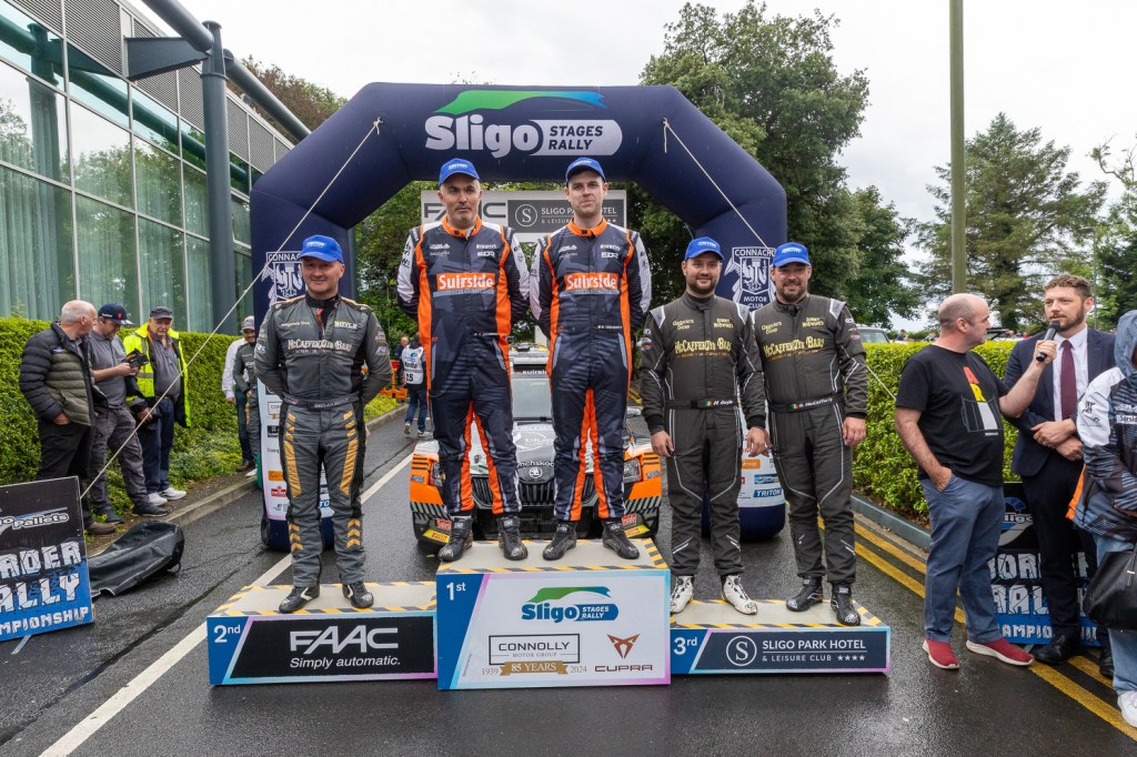 In Class 2, Oran England and Darragh Mullen (Ford Fiesta) took their second Rally4 class win of the season after a tight duel with Cian Caldwell and Paul McPhillips (Peugeot 208 Rally4).