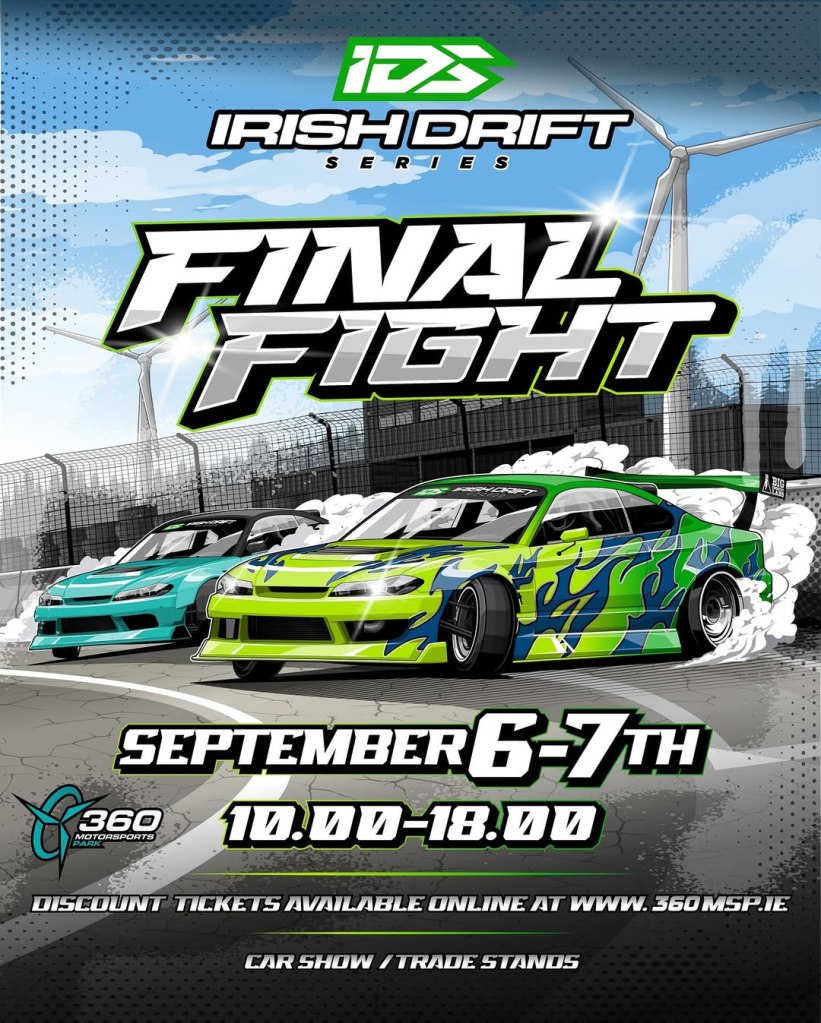 The 2024 Irish Drift Championship comes to a head next month with the grand finale taking place at 360 Motorsport Park – Ireland’s only purpose-built drift track.
