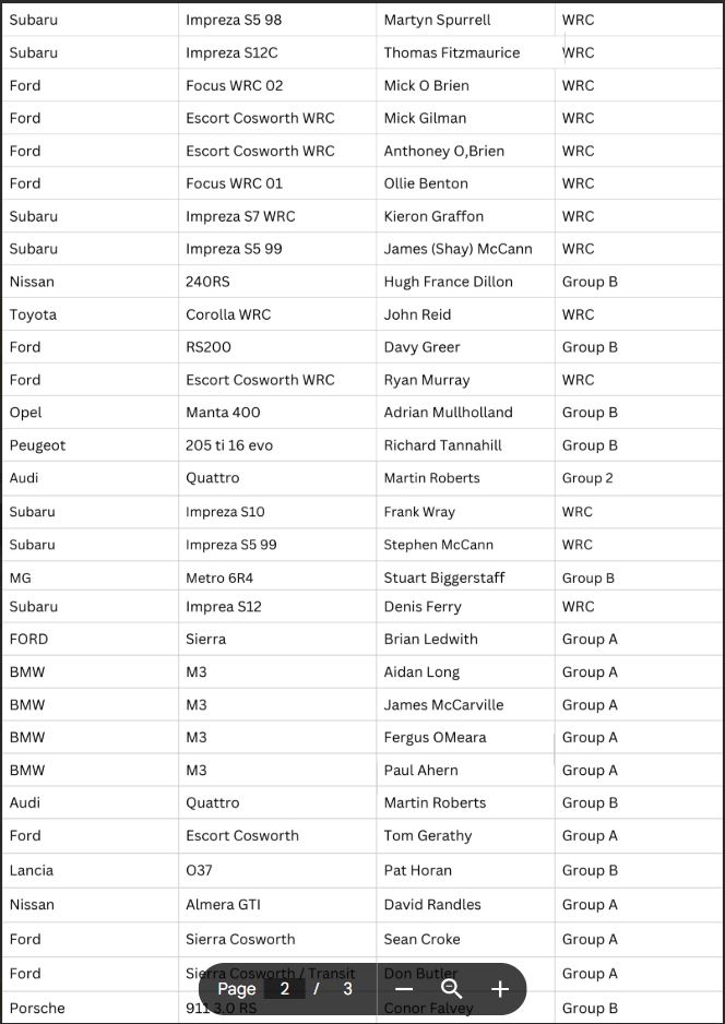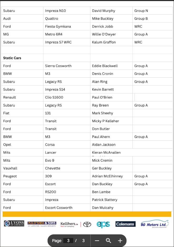 Gates open at 9.30am. The first competitor runs (two laps, two cars at a time) are scheduled for 11.00am, with further runs planned for the afternoon. A food village will operate under the main stand and a first aid station will be located at the start of the first grandstand on entry. Limited-edition souvenir programmes will be on sale for €10 inside the venue.