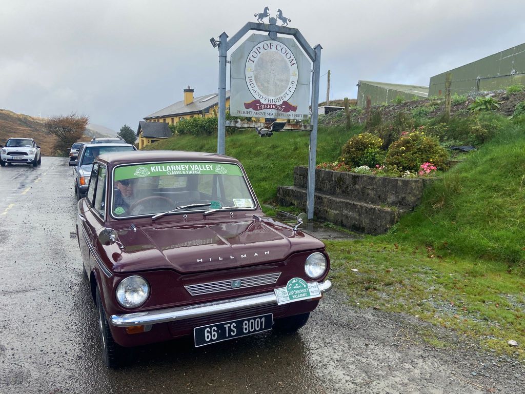 Participants gathered at The Reeks in Killarney on Sunday morning before setting off on the scenic route through Kilgarvan, the Top of Coom, and on to Ballyvourney, where they stopped for tea at the Mills Inn.