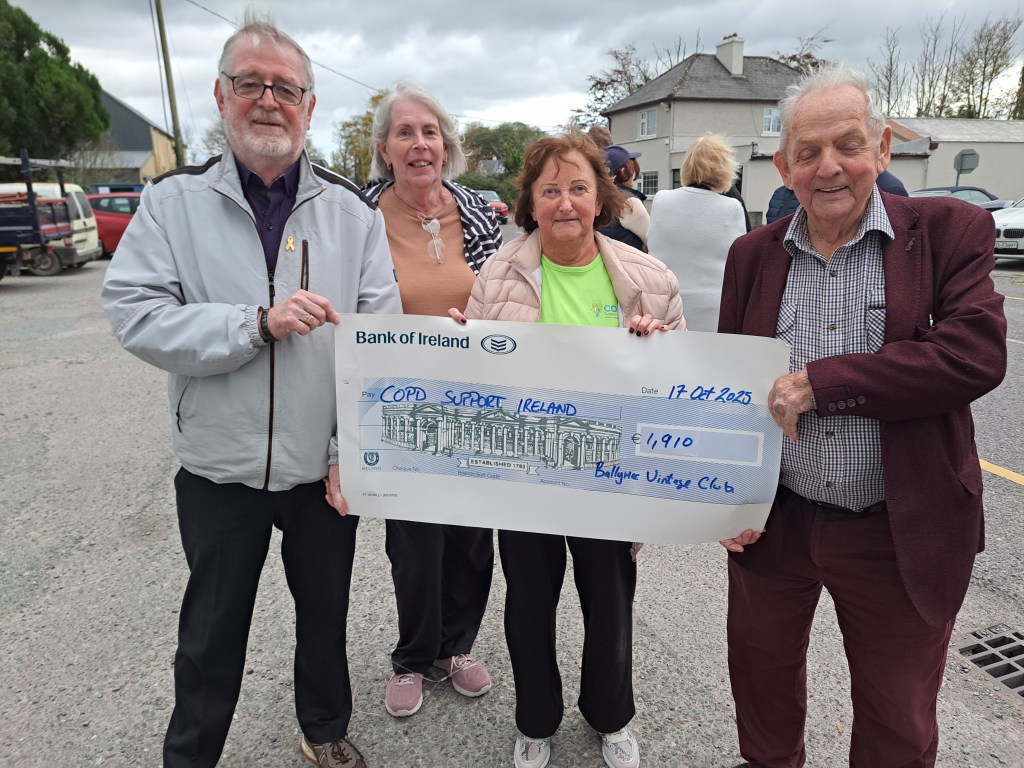 Ballymac Vintage Club was delighted to recently present the proceeds from its annual Tractor and Car Run to this year’s chosen beneficiaries — Clogher National School and COPD Support Ireland.