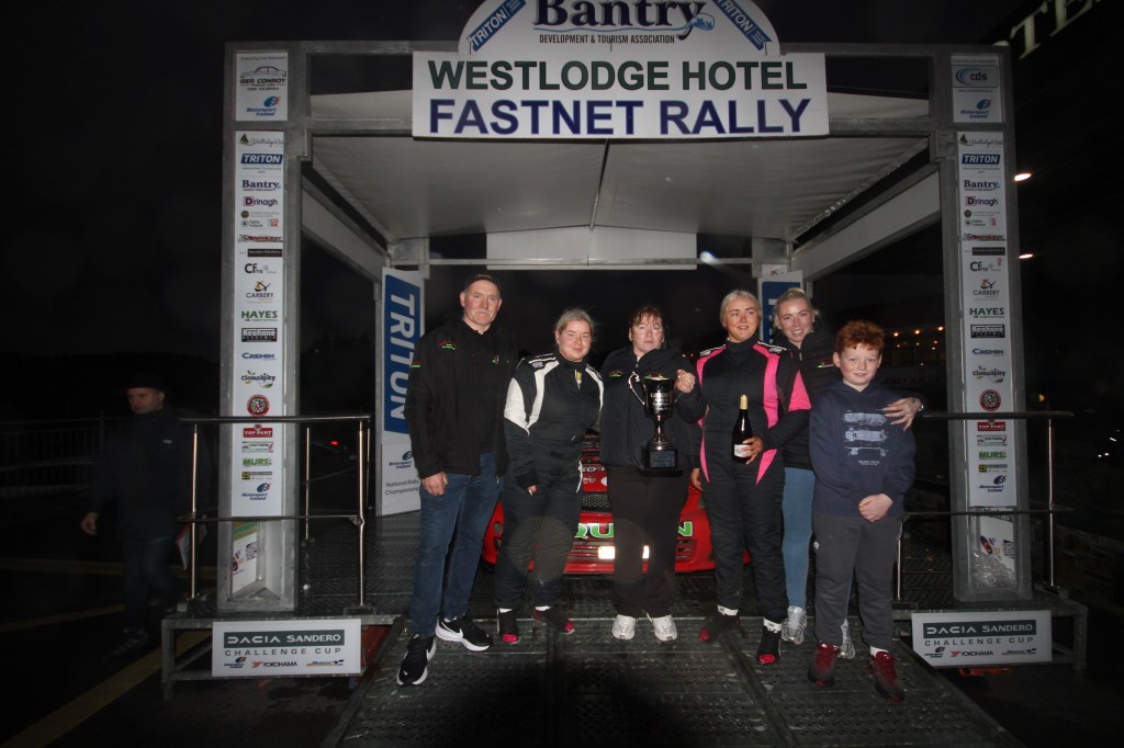 Michelle was co-driven by her cousin Caz Somers, and there were tears and smiles in equal measure as members of the Quinn family gathered at the finish ramp for the presentation. Michelle’s mother Mary Quinn handed her the cup, while her father Mike Quinn, who also competed in the rally, looked on proudly.