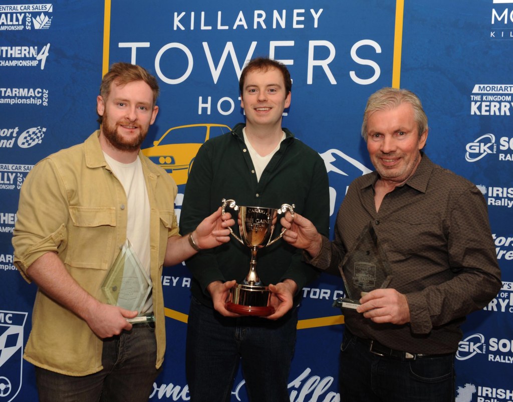 Thomas Randles and Darragh Lynch became the first winners of the Carrig Cup at last weekend’s Killarney Historic Rally. The new award is presented in memory of the late Mike Gaine, a well-known and much-loved member of the Kenmare and wider Irish rallying community.