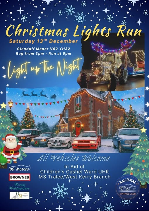 Ballymac Vintage Club’s first Christmas Lights Cars and Tractor Run proved a major success, with 78 vehicles taking part in the festive event at the weekend.