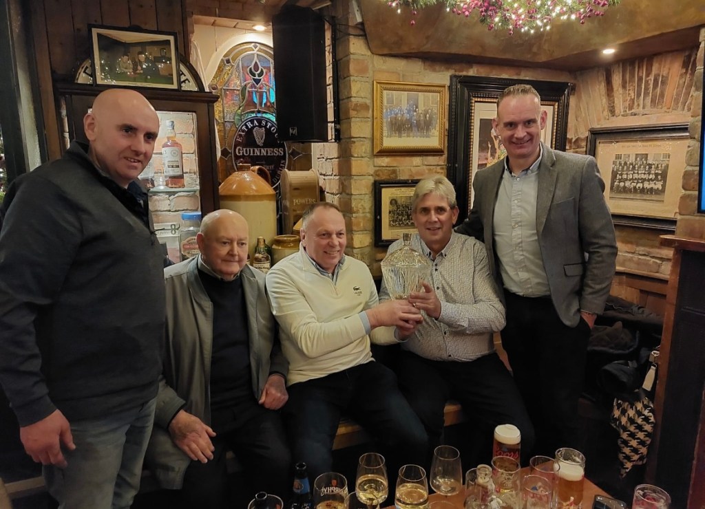 Members of his service crew Denis Hickey, Pat Murphy and Pat Sheehan organised a surprise meeting at Charlie Foley’s Bar on New Street.