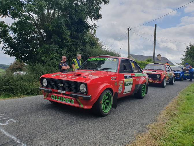Leading the Kerry modified charge is Mike Quinn, partnered by Kieran Doherty in their Class 14 Ford Escort Mk2. Quinn spent the three days in West Cork experimenting with new set up in the rear of this Escort.